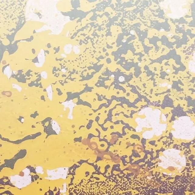 I work on canvasses in bursts, over time. Each is painted in many layers, until it's just as it should be. My focus is colour and texture.